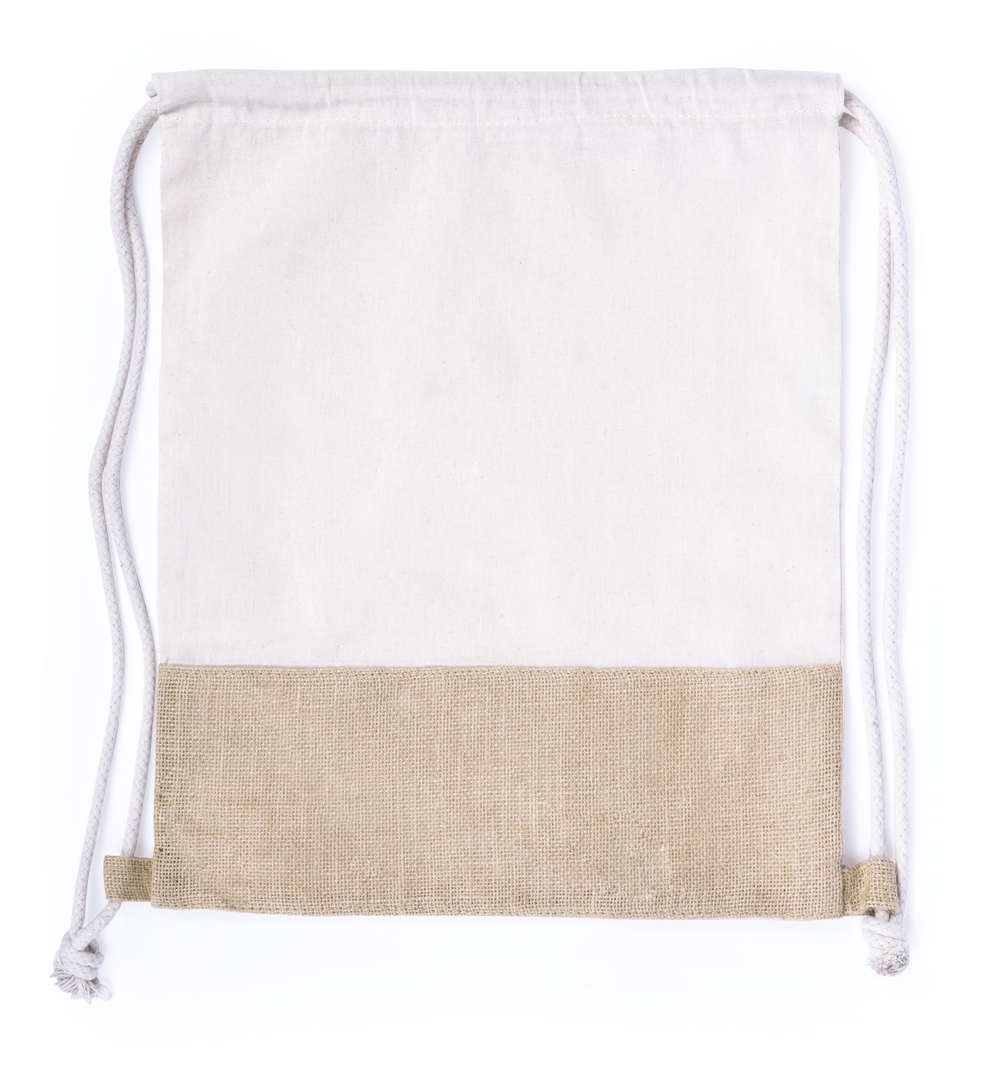 Sacca della linea natura, con base in juta e parte superiore in cotone da 120g/m2. Con spesse corde intrecciate e angoli rinforzati.